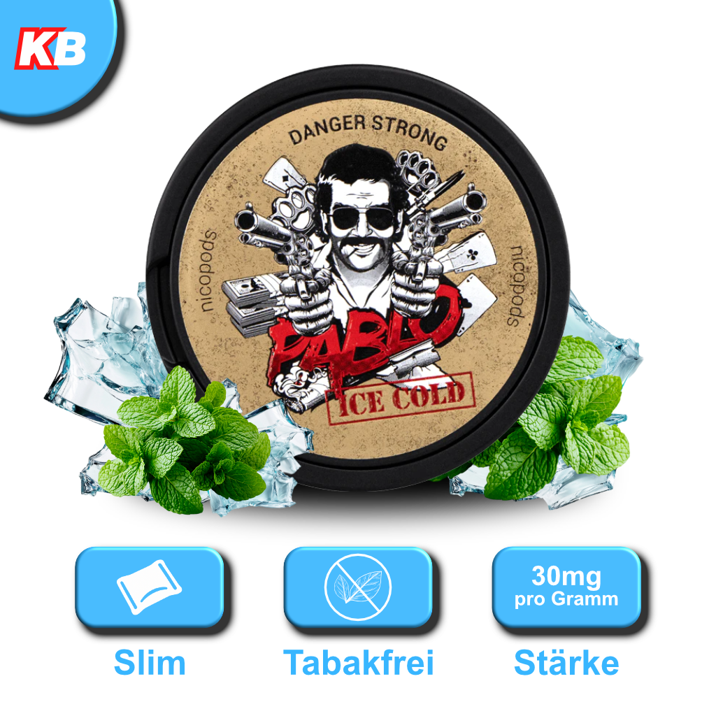 Die Pablo-Reihe richtet sich an sehr erfahrene Nutzer:innen, die eine extrem hohe Nikotinwirkung und intensive Geschmacksprofile suchen. Die Beutel sind tabakfrei („All White“ bzw. „white portions“) und im Slim-Format verfügbar.